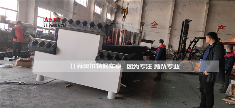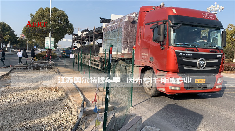 江蘇奧爾特生產(chǎn)的鎮(zhèn)江仿古候車亭第一批發(fā)貨案例