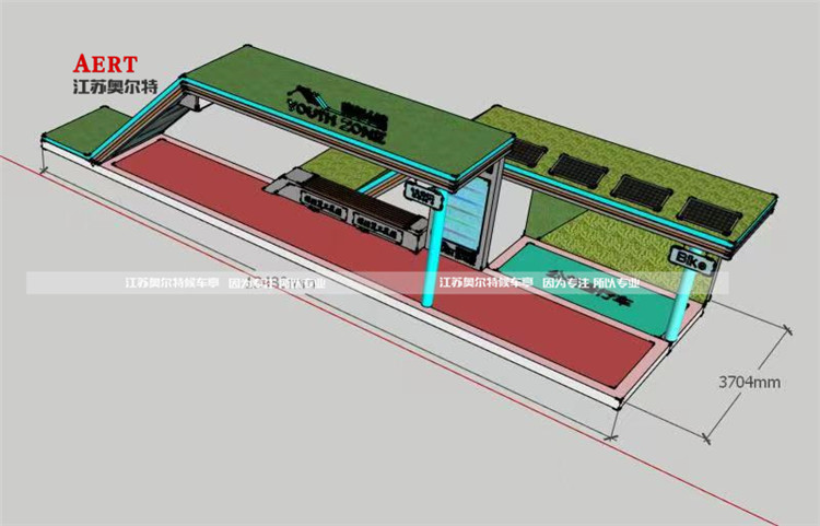 公交候車亭作為城市公共設(shè)施的重要組成部分,在城市面貌中扮演著重要角色,隨著國內(nèi)城市化進(jìn)程的加速發(fā)展,人們 對公共設(shè)施的要求也在提升,通過引入公交候車亭人性化與地域文化設(shè)計(jì)元素來提升城市設(shè)計(jì)品位,此款站臺鹽城特定款式,亭體結(jié)構(gòu)為不銹鋼材質(zhì)防腐防銹持久,站臺頂棚采用雙色發(fā)光燈帶,太陽能板,鋪裝草皮,充分體現(xiàn)了時(shí)代的發(fā)展,大自然的融合。