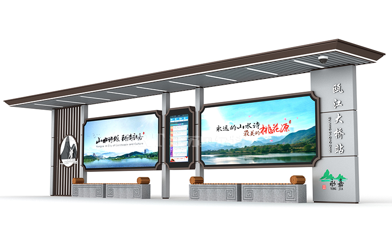本次由宿遷智能候車亭廠家江蘇奧爾特給永嘉客戶設計的智能候車亭,整體采用現(xiàn)代中式風格設計,整體外觀 大氣 沉穩(wěn) 極具歷史文化底蘊, 設計上融入中式建筑風格,彰顯永嘉縣獨具特色的城市魅力。造型上融入楠溪江風景區(qū)及山水詩元素,座椅采用竹簡書的設計就像一幅時間卷軸,帶你遇見千年永嘉 �;ǜ癫糠秩谌肓� 楠溪江舴艋舟元素,舴艋舟曾是楠溪江流域重要的交通工具,是溫州永嘉歷史文化與自然遺產的重要組成部分,更是中國山水詩的核心文化符號之一,整體外觀亦古亦今,用現(xiàn)代的方式展現(xiàn)古代的形制,給人一種融合美,整體顏色也采用中式復古色,凸顯永嘉千年古縣的歷史人文。