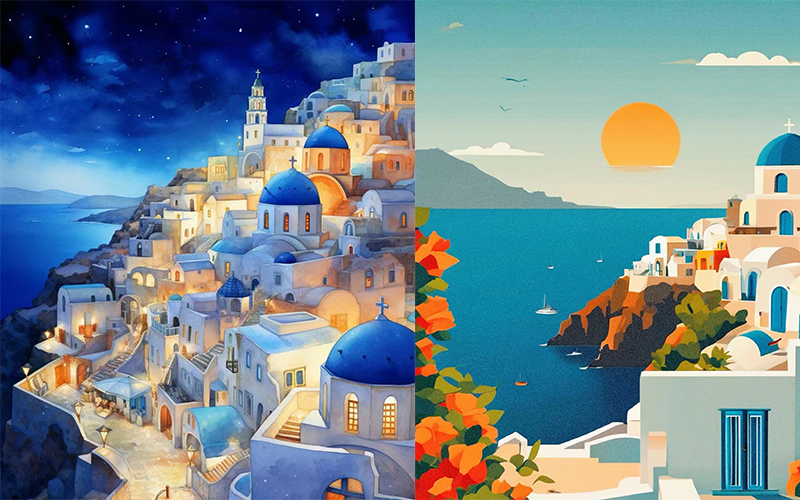 這種藍(lán)白相間的色彩和雙月灣蔚藍(lán)色的海水相應(yīng)成輝,營造出一種純凈的、蔚藍(lán)色的浪漫氛圍,